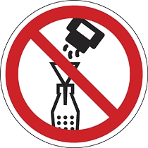 A flakonba idegen anyagot tölteni tilos! munkavédelmi tábla. Szabványos biztonsági jelzés ipari és munkahelyi környezetbe.