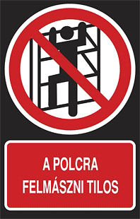 A polcra felmászni tilos! munkavédelmi tábla. Szabványos biztonsági jelzés ipari és munkahelyi környezetbe.