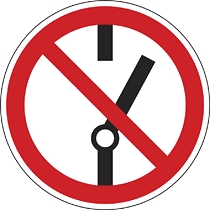 Kapcsolni tilos! munkavédelmi tábla. Szabványos biztonsági jelzés ipari és munkahelyi környezetbe.