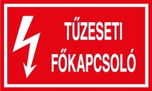Tűzeseti főkapcsoló munkavédelmi tábla. Szabványos biztonsági jelzés ipari és munkahelyi környezetbe.
