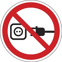 Vezetéknél fogva kihúzni tilos! munkavédelmi tábla. Szabványos biztonsági jelzés ipari és munkahelyi környezetbe.